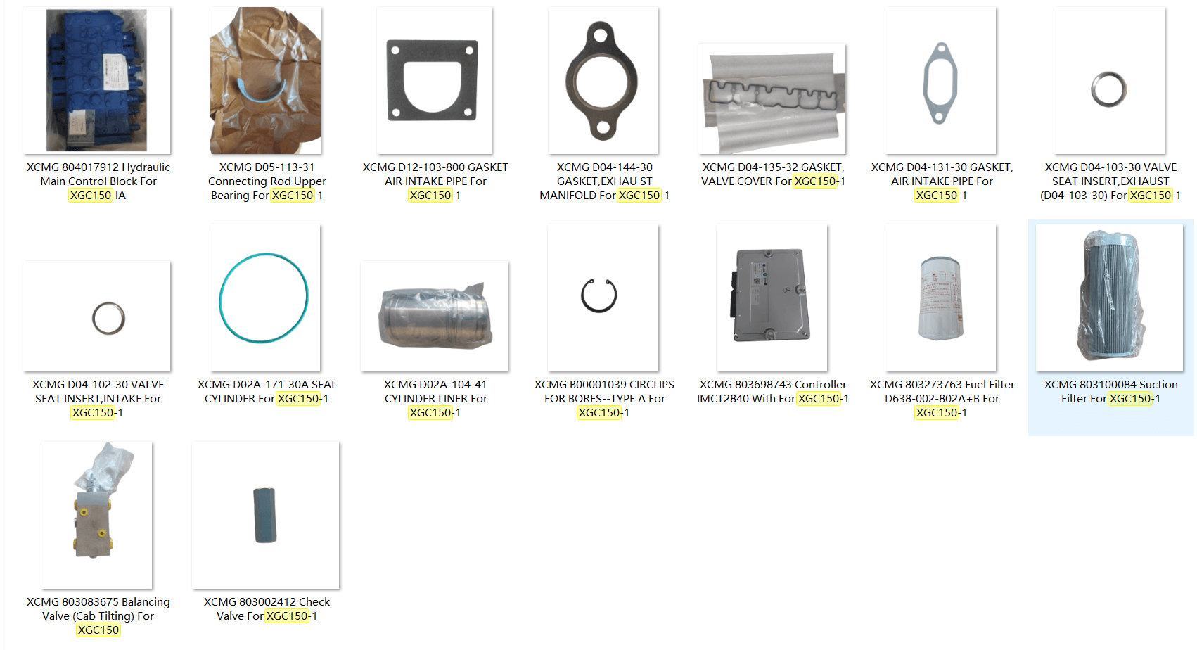 Keep your lifting operations running at peak efficiency with genuine XCMG Crawler Crane Parts, engineered for superior reliability and performance. We provide complete parts solutions for the XGC Series, including critical components for XGC55, XGC150, and XGC400 models — ensuring full coverage from medium to heavy-duty cranes. Each OEM part is precision-manufactured and tested to meet XCMG factory standards, ensuring perfect fitment, long service life, and optimal load performance. Whether you need structural components, hydraulic assemblies, electrical systems, or control modules, xcmgsparts.com delivers authentic XCMG parts with global support and fast delivery.