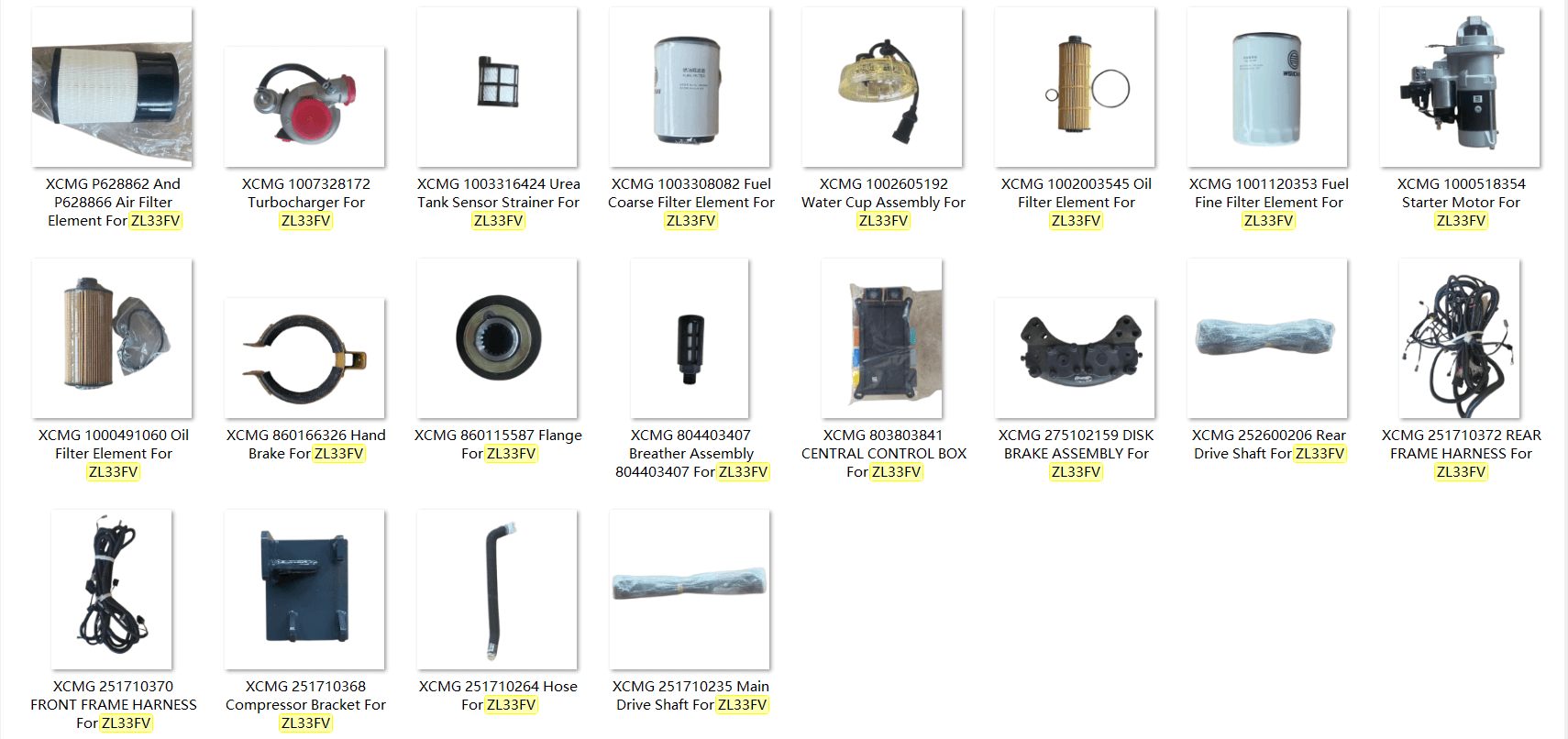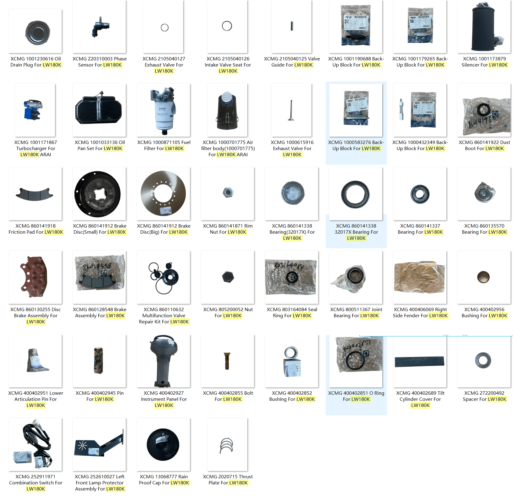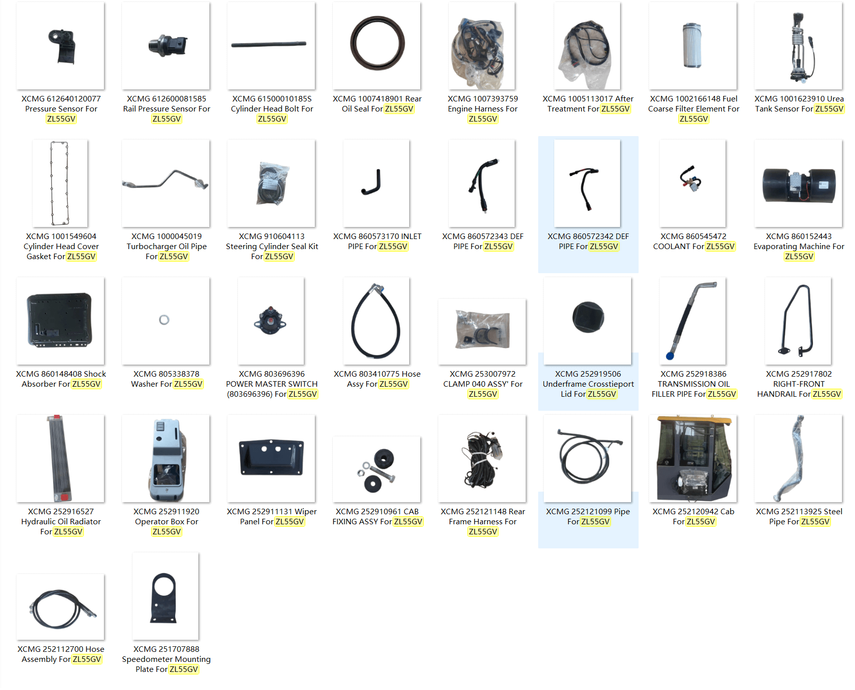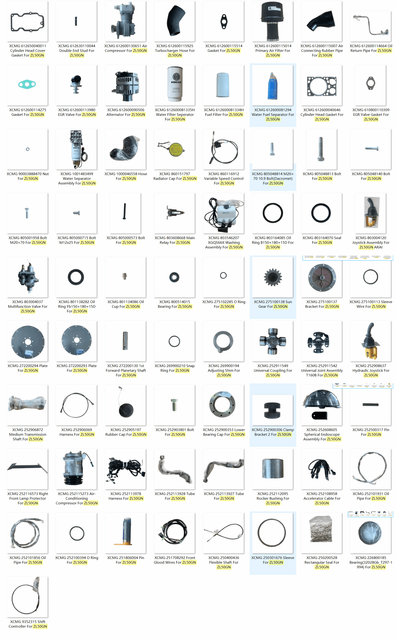 Find genuine XCMG loader parts designed to keep your equipment running at peak performance. Our inventory covers a full range of components for popular models including LW300FN, ZL50GV, and ZL55GV. Each part is manufactured to XCMG’s exact standards, ensuring durability, compatibility, and reliable performance in the toughest working conditions. From hydraulic pumps, filters, and engine components to electrical systems, transmission assemblies, and structural parts, we supply everything you need for maintenance or repair. All items are sourced directly from XCMG or certified OEM suppliers, guaranteeing quality and long service life.